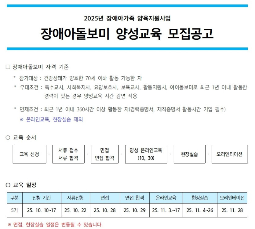 2025년 제5기 장애아돌보미 양성교육 모집 안내