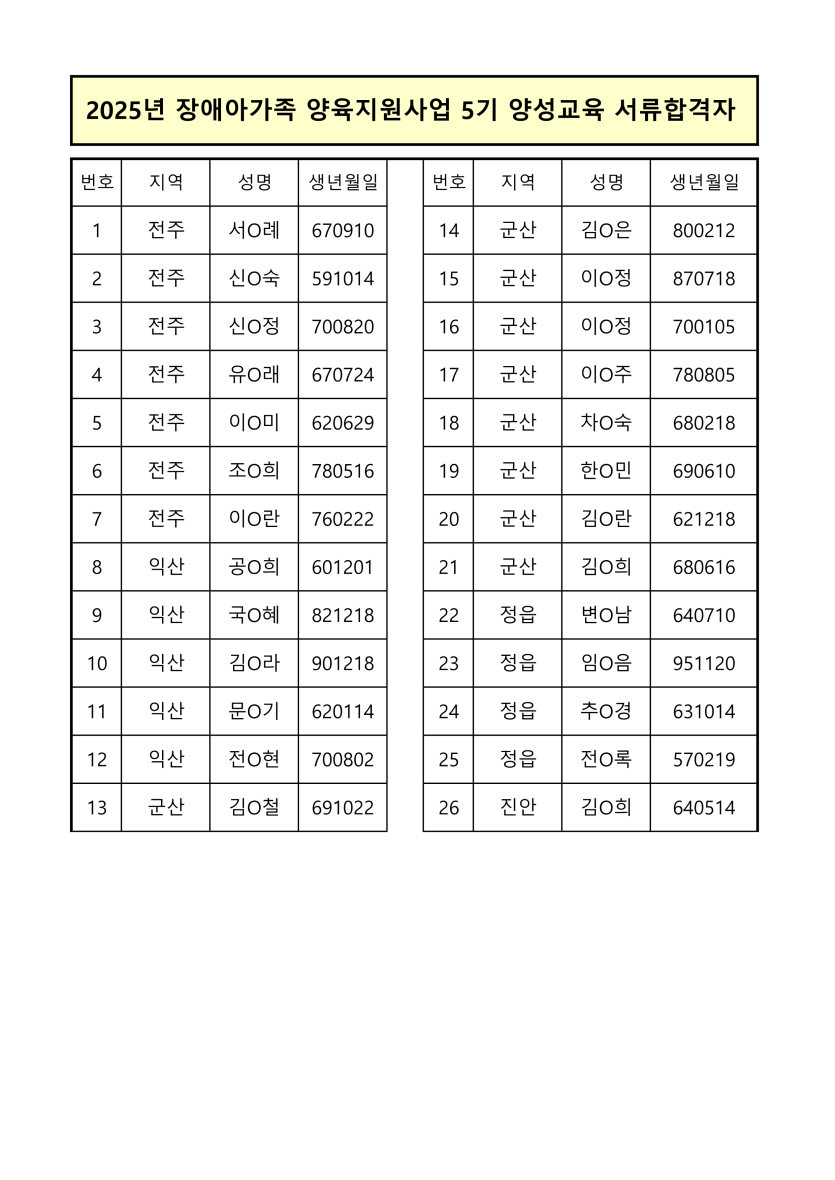 2025년 장애아돌보미 5기 양성교육 서류전형 합격자 공지