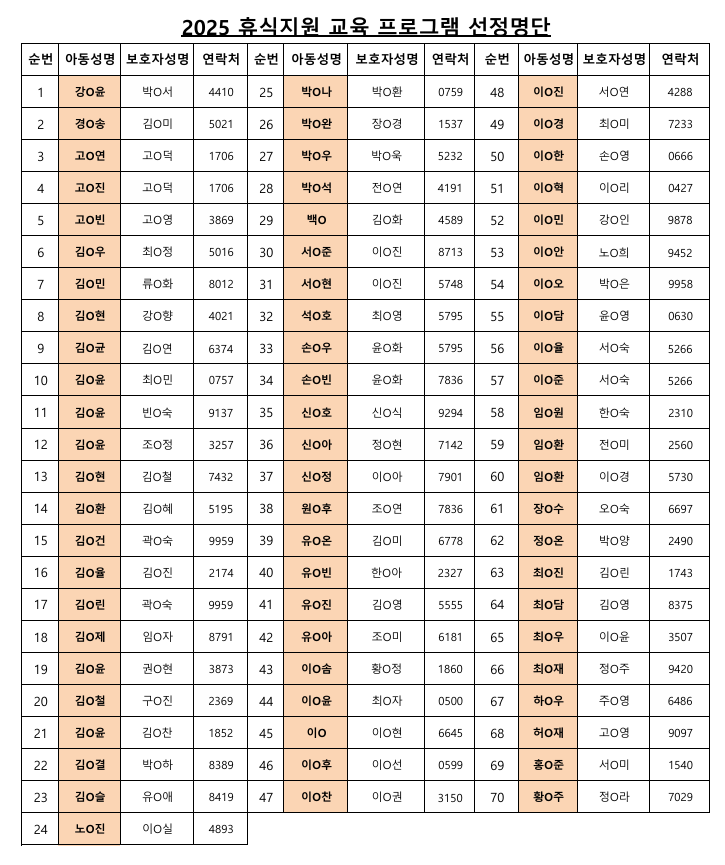 선정되신 70가정을 공지 안내드리오니 확인해 주시고,